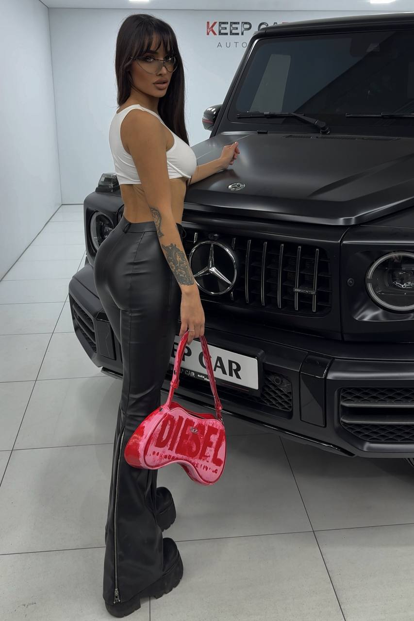 Еко-шкіра, з якої виготовлені ці брюки, забезпечує не тільки естетичний вигляд, але й практичність. Матеріал м’який на дотик, приємний до тіла і, що важливо, дозволяє шкірі дихати. Висока посадка брюк підкреслює лінію талії, роблячи фігуру більш витонченою. Завдяки застібці на блискавку та ґудзик, брюки надійно фіксуються і легко одягаються. Декоративні робочі блискавки, розташовані ззаду внизу, додають особливого шарму та роблять ці брюки ще більш цікавими.