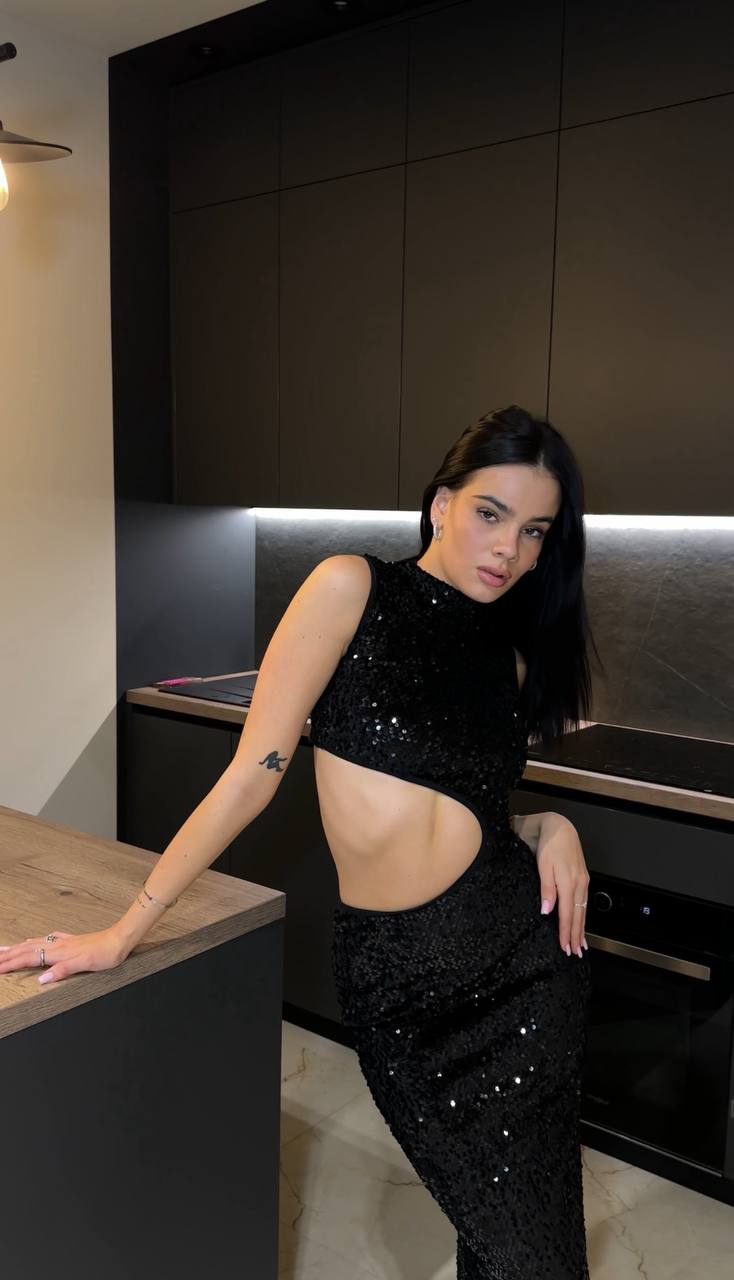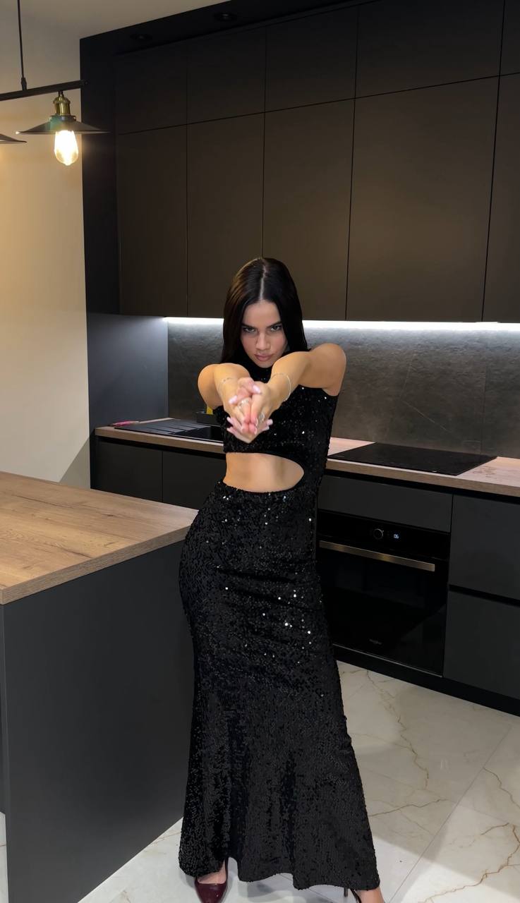 Головна » Каталог » NEW YEAR COLLECTION’25✨ » Сукня максі асиметрична з пайетки на велюрі